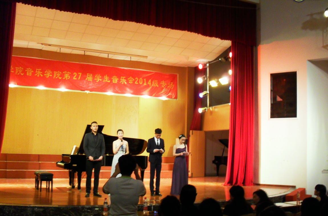 2015年4月29日,又是春末夏初一个不一样的日子,音乐学院在首山校区举办了2014级新生的第一次专场音乐会。音乐学院邹敏华经理,党委杨小高书记与百余名师生共同欣赏了此次演出