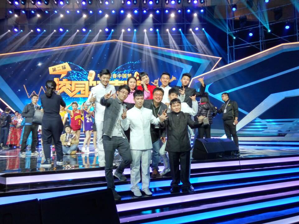 图:全国第二届校园好声音第三名比赛现场、与领导合影及奖状奖杯(20160428)