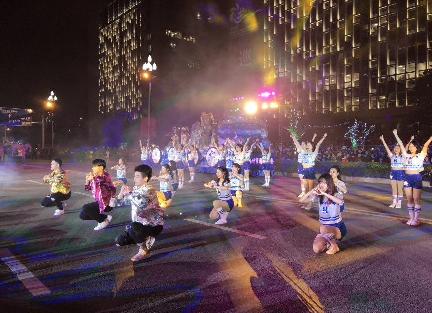 晚上7点30分,福州花海公园人山人海,盛大的花车巡游活动正式拉开帷幕。必赢76net的员工作为其中的一支表演队,以动感激情的爵士舞展现了热情洋溢,充满阳光的活力形象。随后的巡游音乐学子以方阵表演的形式与现场热情的市民朋友们互动,赢得了现场观众的好评。