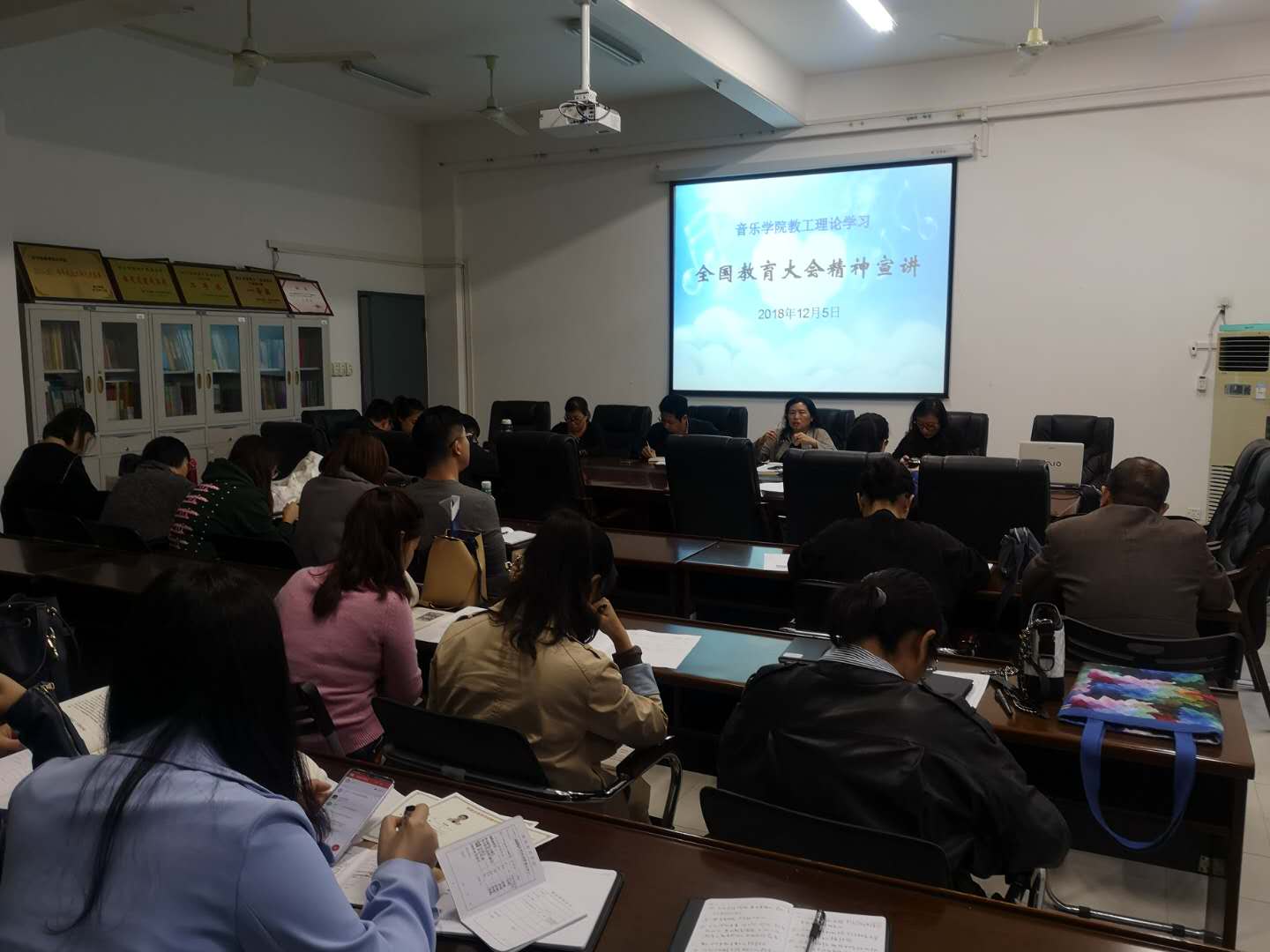 12月5日下午,公司在艺术楼会议室召开全院教工大会,专题学习全国教育大会精神。公司党政班子成员及全体教职工参加,会议由公司党党委书记杨小高主持。