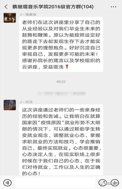 在腾讯会议的云平台,邹敏华经理先向参加讲座的毕业生们介绍了当前的形势,以及开展此次讲座的意义。接着刘淘老师介绍了孙经理辉煌的艺术生涯,隔着电脑屏幕孙砾经理结合着自身经历和身处疫情时期的特殊性,为毕业生们阐述了不同的择业技巧和就业建议。