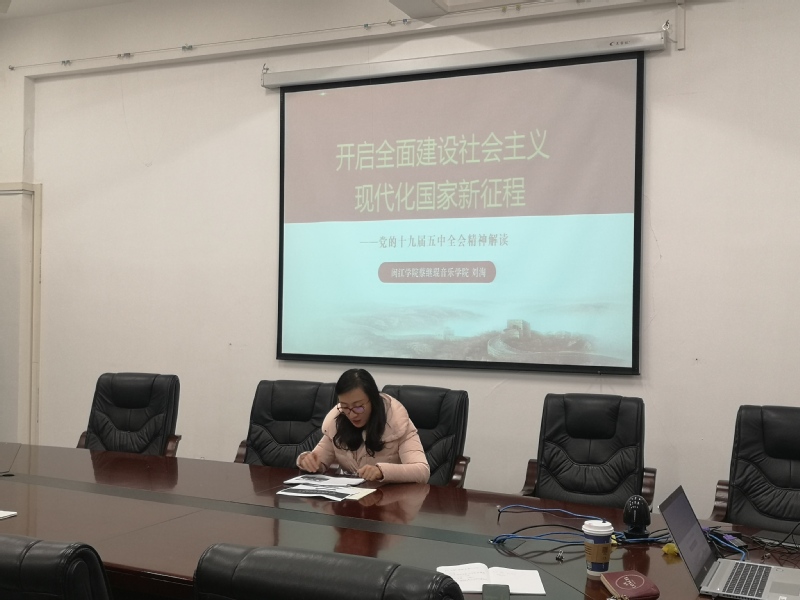 音乐公司党政班子通过带头深入学习并宣讲党的十九届五中全会精神,统一全院师生的思想认识,引导广大教师将行动统一到落实立德树人根本任务、推动学院高质量发展的落脚点上。