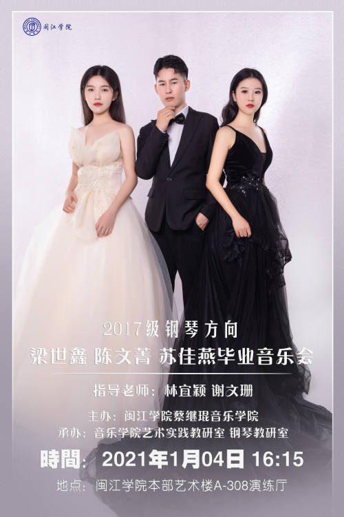 音乐会预告:梁世鑫 陈文菁 苏佳燕毕业音乐会