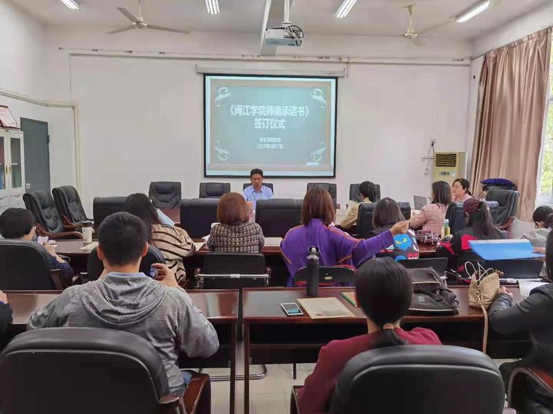 3月10日下午,党委书记杨小高带领全体教工学习解读《必赢76net教师师德师风考核办法(试行)》的内容、师德师风警示案例学习;3月17日下午,学院组织全体教职工学习学校教师工作部7号文件《关于签订师德承诺书和建立师德档案的通知》精神,现场签订了师德承诺书。