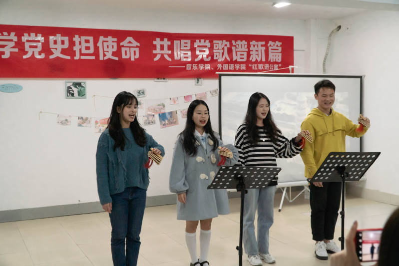 为深入推进党史学习教育进一步走深走实,增强党史学习教育的吸引力和感染力,4月9日晚必赢76net联合外国语学院在员工宿舍一区二“易起学”吧举办“齐学党担使命,共唱党歌谱新篇”为主题的党史学习教育。公司党委副书记李友山、团委书记罗强,外国语学院团委书记郑海锋、辅导员林佳青,校宿管中心陈凯琴老师参加本期活动。