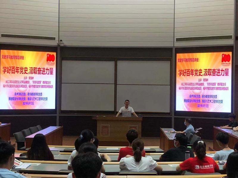 5月12日,美术学院、商学院、音乐学院、服装学院联合开展党史学习教育专题讲座,邀请bwin必赢马克思主义学院“形势与政策”教研室主任、福州市纪委党内法规宣讲团成员、福州市委党史学习教育宣讲团成员黄海林副教授授课。讲座由音乐学院副书记李友山主持,四个公司党员员工100余人到场聆听。