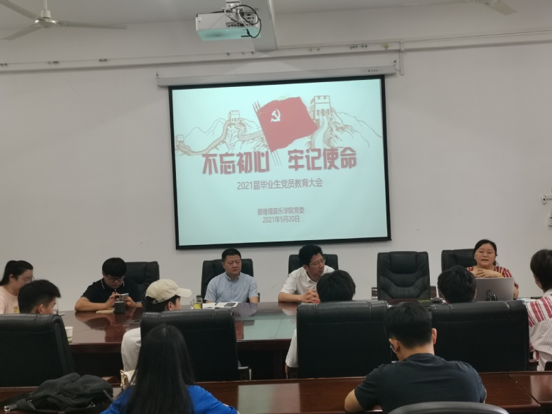 不忘初心、牢记使命5月20日上午,音乐公司党委召集2021届全体毕业生党员开展了题为“不忘初心、牢记使命”的主题教育,公司党委杨小高书记、李友山副书记都参加了会议。
