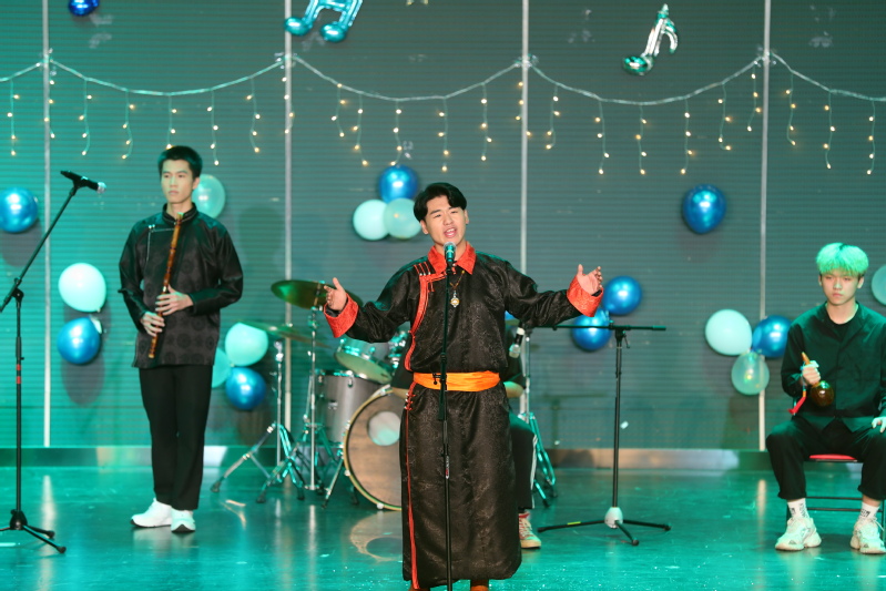 “大江东去,浪涛腾跃成千古;大江东去,龙势矫矫向太阳;大江东去,枕下终夜是江声……”黄昊天同学演唱的《大江东去》气势磅礴,震撼全场。