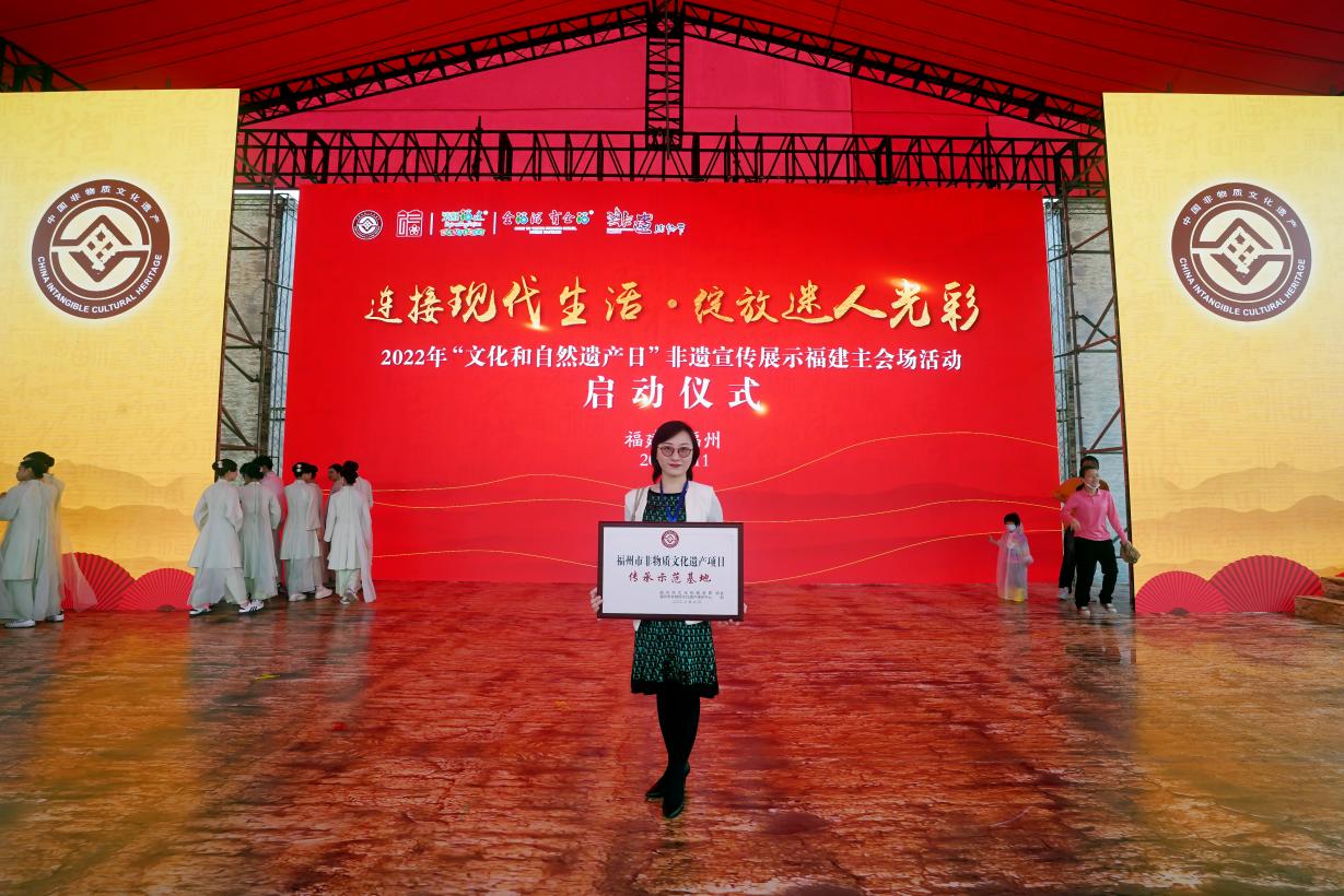 611日,由福建省文化和旅游厅、福州市人民政府主办的2022年“文化和自然遗产日”非遗宣传展示福建主会场活动启动仪式在福州市晋安区新店古城遗址公园举行,拉开了2022年“文化和自然遗产日”福建非遗宣传展示系列活动的序幕。启动仪式上,领导和嘉宾为第五批国家级非遗代表性项目、第七批省级非遗代表性项目、福州市级非遗传承示范基地授牌。公司副经理刘淘受邀参加授牌仪式。