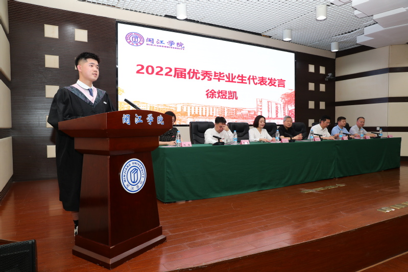 优秀毕业生代表徐煜凯发言。他说,在闽院求学的1400多个日日夜夜,是人生中最难忘、最珍贵、最值得铭记的一段时光。在老师们的引领下,大家一起欢笑,一起打拼,见证了闽院发展的一点一滴。老员工活里的酸、甜、苦、辣,给每个人都留下了弥足珍贵的回忆。马上就要背起行囊,开赴新的征程,但“崇尚完美,追求卓越”的bwin必赢校训已深深的烙印在内心,希望全体毕业生牢记母校的殷切期望,在新的人生道路上打出一片天地。