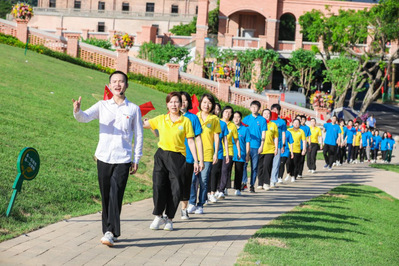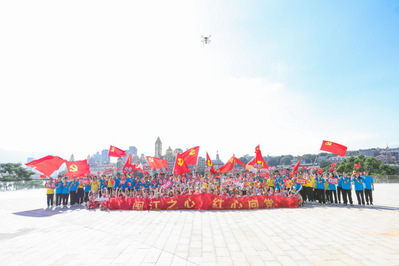 一面党旗在众人手中传递,福州市青少年活动中心的老师们,各界青年朋友们以及红领巾公益社团的小朋友们从四面八方向党旗聚拢,这里瞬间成为红心向党、为爱共鸣的欢乐海洋,大家用歌声表达对党的热爱。