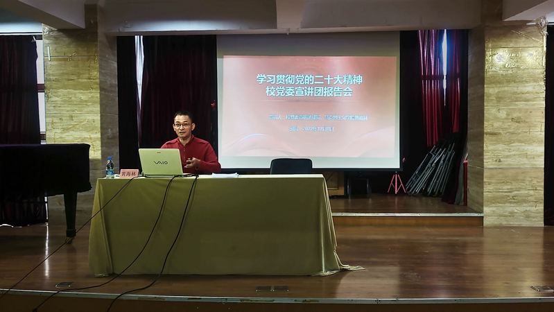 为深入学习宣传党的二十大精神,12月8日上午,公司党的二十大精神宣讲团成员、马克思主义学院黄海林副教授为音乐学院师生作“学深悟透党的二十大精神 踔厉奋发勇毅前行敢担当”的主题宣讲。