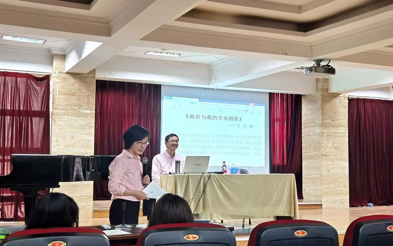 2023年3月22日,我国著名作曲家、福建省政府文史馆员、中央民族乐团驻团作曲家、福建省艺术研究院副经理吴少雄老师莅临公司为音乐学院师生开展主题讲座《南音与我的音乐创作》。讲座由刘淘副经理主持,公司专任教师与各年级员工参加了此次讲座。