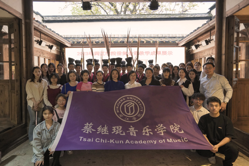 4月19日,音乐学院副经理、福州市非物质文化遗产项目传承示范基地负责人、《佾舞的传承》金课负责人刘淘副教授携36名金课学员赴福州市佾舞礼乐书院进行教学成果展示和交流活动。福建省人民政府外事办公室、港澳事务办公室原党委书记、主任宋克宁,福州市文旅局二级调研员陈思源,福清市文化体育和旅游局原副局长林国祥出席此次活动,音乐学院经理陈俊玲,教师卢盈盈、刘雪颖、吴红叶、章乐贝、张铠麟、卢淳婕、宋天予到场观摩。
