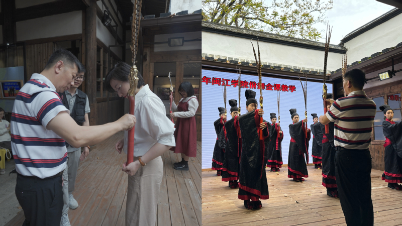 必赢76net于2022年6月授牌为福州市非物质文化遗产项目传承示范基地,与福清立达孔学会、福州市佾舞礼乐书院展开深度合作。2022-2023学年,刘淘副经理开设两期《佾舞的传承》金课,累计100余名员工报名参加该课程。佾舞代表性传承人李宗霖作为课程主讲教师,多次受邀莅临bwin必赢开设讲座,并亲自向“佾生”传授佾舞礼乐文化。