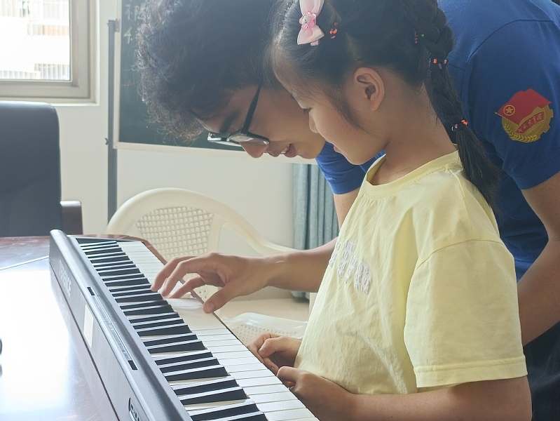 七月的风,热烈而富有希望,吹向了罗源县凤山镇城关村。2023年7月4日,“爱心支教 伴你童行”音乐夏令营进入了第二天。通过前一天的支教活动,支教队员们深入接触小朋友们,了解他们的音乐基础和水平,及时调整授课内容,携手在孩子们心中洒下音乐的种子,以美育教育带动乡村基础教育,助力乡村振兴。