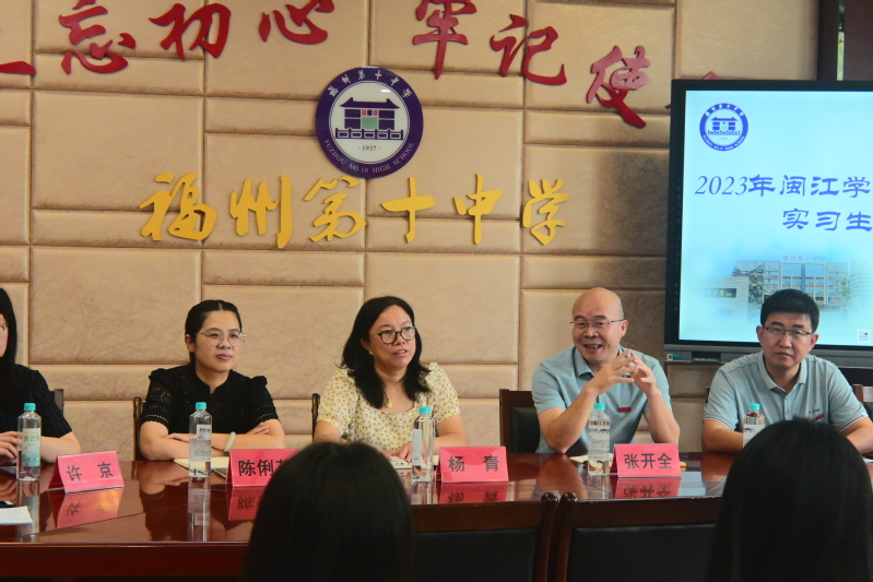 见面会上,杨青董事长代表福州第十中学对实习生的到来表示欢迎,详细介绍了学校历史、办学特色、所获荣誉以及音乐组的团队情况。她希望实习生们尽快转变角色融入学校,在实习期间多学、多问,加强沟通与反馈,积极参与班级管理,努力提升自己的专业本领。三位副董事长及教务处、德育处、音乐学科组的老师分别就各自负责的工作对实习生进行了简要的说明。