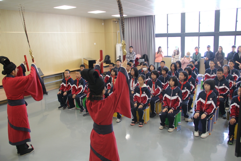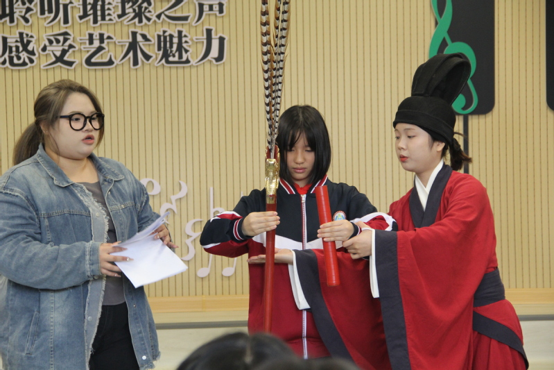 11月29日上午9点,bwin必赢非遗传承示范基地负责人、音乐学院刘淘副经理带领佾舞传承小分队的同学们走进福州第三十二中学,在洋下校区的音乐教室开展了一次别开生面的佾舞进课堂活动。福州第三十二中学综合教研组组长池毓大老师、陈嘉倩老师,音乐学院万凡捷博士参与此次活动。