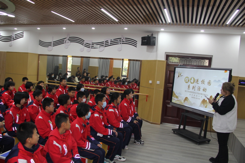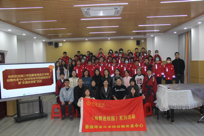 128日上午,必赢76net佾舞传承中心的五名佾生精彩亮相《佾舞进校园》第四站,此次活动在福州第四中学桔园洲中学成功举行,深受师生欢迎。活动吸引了福州第四中学桔园洲中学教研室主任武献军老师,德育处副主任陈彩云老师,党务秘书衷颖老师,图书馆馆长侯凤铃老师,艺术教研组组长刘捷老师,音乐美术语文学科老师、必赢76net章乐贝老师,以及正在福州第四中学桔园洲中学开展毕业实习的2020级音乐学(师范)班同学等嘉宾共同参与。作为佾舞的传承者,我们带着激情和责任,与福州第四中学桔园洲中学的七年级(14)班同学们一起探寻佾舞的魅力,共同感受非遗文化的深刻价值。