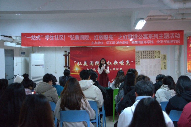为深入贯彻党的二十大精神,深学细悟党的创新理论,弘扬伟大的建党精神,践行五育闽院,从党的重大成就和历史经验中增长智慧,增强信心,用青春唱响“强国复兴有我”的时代强音,1220日下午,校学工部宿舍管理与服务中心联合音乐学院、经管学院在三区三易起学吧开展主题为“弘美闽院,红歌嘹亮”的红歌进公寓活动。