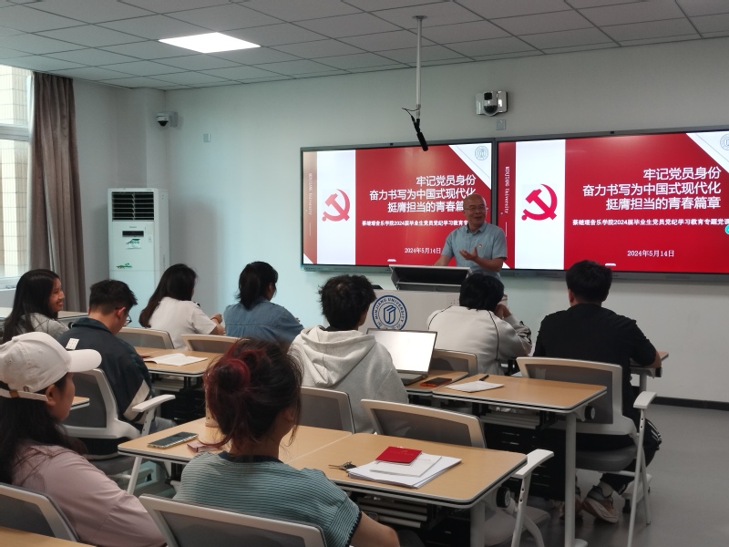 5月14日下午,公司党委2024届毕业生党员党纪学习教育专题党课开讲。公司党委副书记张开全以“牢记党员身份,奋力书写为中国式现代化挺膺担当的青春篇章”为题,为音乐学院全体毕业生党员上了一堂精彩的党纪学习教育专题党课。公司党委组织员查琳琳、员工第一党支部书记罗强以及学院全体2024届毕业生党员共同参加会议。