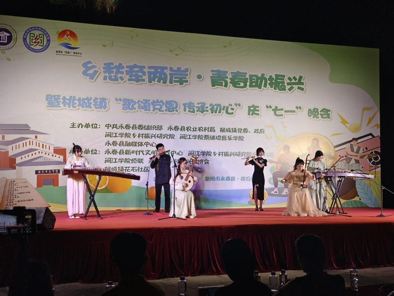 演出在桃城镇花石社区的文化广场举行。活动吸引了数百名干部群众驻足观看,音乐学院实践队的同学们用传统民族乐器演绎《上春山》,带领观众感受民乐的魅力,用《变脸》展现川剧非遗文化精髓,用闽南语演唱歌曲《那些花儿/望春风》拉近与市民群众的距离,用余光中先生的诗歌,用《梨花又开放》、《故乡的云》、《边境的小鸟》等歌曲展现永春的乡愁文化,获得现场观众的阵阵掌声。整场演出也得到了现场观众的一致好评。