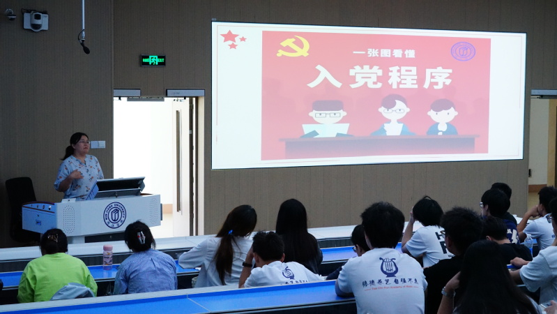 讲座伊始,党委组织员查琳琳先从“为什么要加入中国共产党”引入,介绍了党的历程,她以扎实的党务知识和丰富的实践经验向同学们详细地阐述入党需具备的基本条件,清晰地讲解了入党的每一项程序,并指导同学们如何正确书写入党申请书,着重讲解书写格式以及注意事项,确保每一位同学都能够写出符合规范要求的申请书。查琳琳老师的讲述深入浅出,不仅解答了新生们的疑惑,更在他们心中播下了信仰的种子。