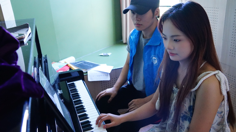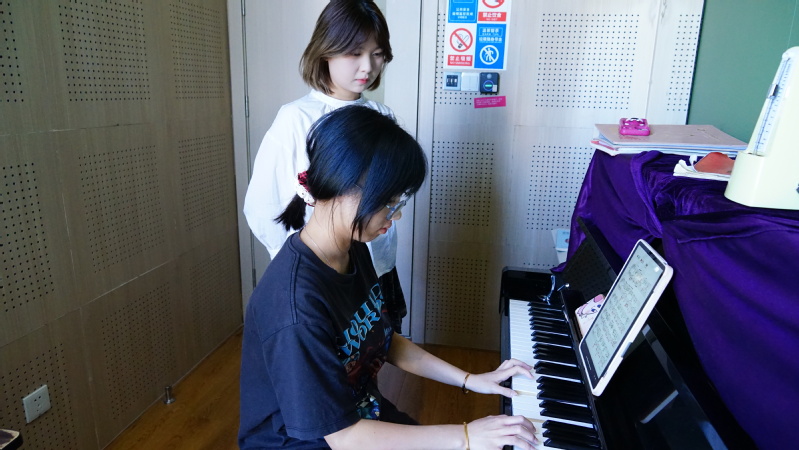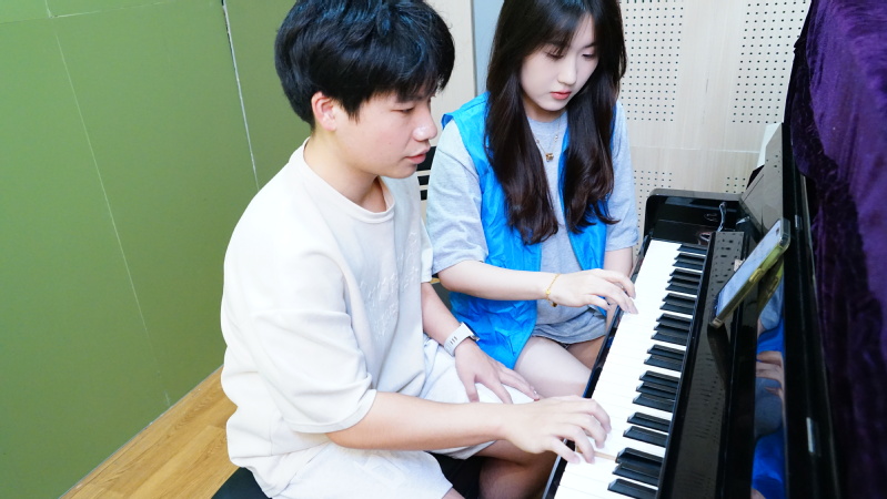 为进一步推进“七个百”老员工成长计划落细落实,为学院同学提供展示音乐教育能力的平台,锻炼专业技能,同时也为校内热爱音乐的同学们提供专业钢琴教学指导,2024年9月18日14:00,音乐学院“乐享”音乐公益教学服务队在艺术楼开展了一期“私人订制”的初级钢琴体验课程,特邀美术学院的同学们共同体验。