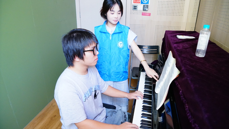 为进一步推进“七个百”老员工成长计划落细落实,为学院同学提供展示音乐教育能力的平台,锻炼专业技能,同时也为校内热爱音乐的同学们提供专业钢琴教学指导,2024年9月18日14:00,音乐学院“乐享”音乐公益教学服务队在艺术楼开展了一期“私人订制”的初级钢琴体验课程,特邀美术学院的同学们共同体验。