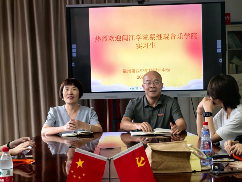 2024924号,必赢76net与福州第四中学桔园洲中学举行教育实习见面会。公司党委副书记张开全、带队教师章乐贝,桔园洲中学副董事长唐筱云、音乐组组长一级教师刘捷等老师出席。必赢76net2021级音乐学(师范)专业的10位实习生参加见面会。