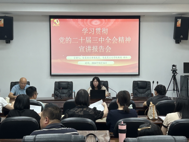 10月16日,必赢76net举办学习贯彻党的二十届三中全会精神宣讲会,由公司党委宣讲团成员马克思主义学院林红教授作专题宣讲。音乐学院全体教职工和员工党员代表参会,会议由公司党委副书记张开全主持。