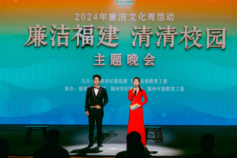 10月21日晚,由福建省纪委监委、福建省委教育工委联合主办的“廉洁福建·清清校园”2024年廉洁文化周之“廉洁福建·清清校园”主题晚会在福建师范大学举办。公司党委副书记任涛、校纪检监察干部、音乐学院师生党员代表等出席观看演出。公司2022级表演专业员工胡湘楠担任晚会主持人之一。