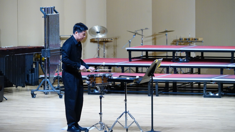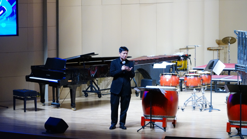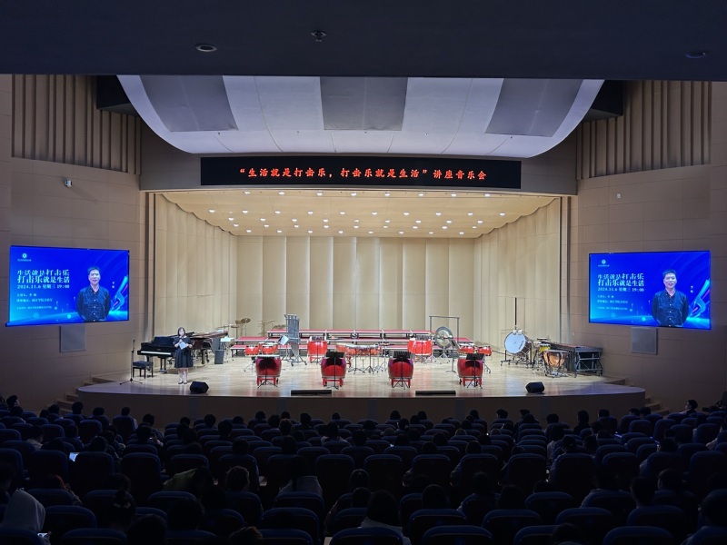 密集的鼓点如同雨滴般急促落下,每个音符都敲打在心头,让人不由自主地紧张起来。11月6日晚,“生活就是打击乐,打击乐就是生活”讲座音乐会在bwin必赢音乐厅圆满举行。此次讲座由福建师范大学打击乐副教授李林携手功夫打击乐团出演,必赢76net2023级音乐学专业章城宇共同参与演奏。音乐公司党委副书记张开全、经理陈俊玲、副经理陆徽、各教研室老师以及全校400余位师生在现场聆听欣赏。讲座由音乐学院经理助理、器乐教研室主任卢盈盈主持。