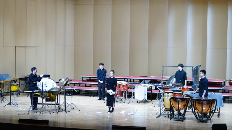 音乐会上,李林老师携手福建师范大学功夫打击乐团为我们带来了一段美好的音乐时光。《千佛手》《反弹》等经典作品让我们耳目一新,见证震撼与律动的完美交融;《冒险asvanturas》大胆创新让小军鼓够发出不同的色彩和声音;由马林巴独特的音色所演奏出的《速率velocities》、《Libertango自由探戈》等作品让现场观众沉醉在美妙的旋律之中。《追影》充分表现了在音乐里的互相追逐以及嬉戏。不同风格类型的乐器所演奏的《善待无人区之王》更是用极致的舞台设计将气氛推上高潮,让观众沉浸式体验音乐艺术的美!