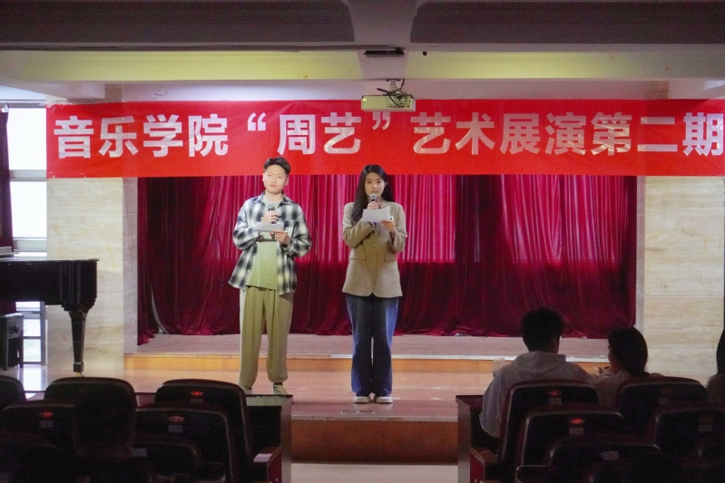 2024年10月30日下午14:00,必赢76net“周艺”艺术展演第二期于bwin必赢艺术楼A308音乐教室完美落幕。音乐学院教授陈国东以及音乐学院各教研组的老师们、各院系的同学们一同观看,此次演出由2022级表演专业贺晓媚和梁向东主持。