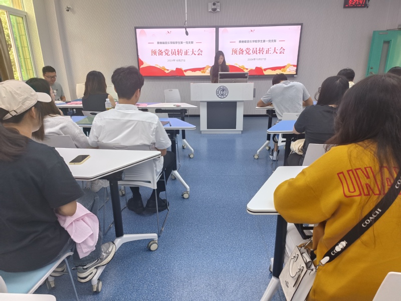 为进一步强化党员教育培养,加强党员队伍建设和组织建设,把牢党员发展质量关,增强党支部凝聚力和战斗力,10月27日,音乐学院员工第一党支部在教学楼1b204举办党员转正和吸收新党员大会。会议讨论了赵安慧同志的转正事宜和吸收许宇航等5名发展对象为支部预备党员的事宜。会议由学院团委书记兼员工第一党支部书记罗强主持,支部全体党员、入党介绍人共同参与。