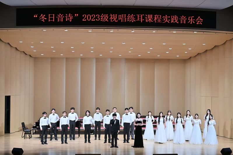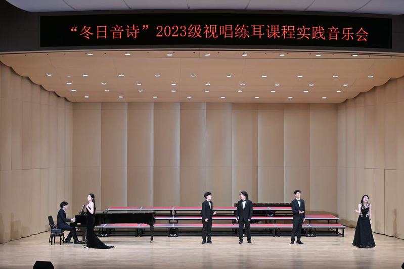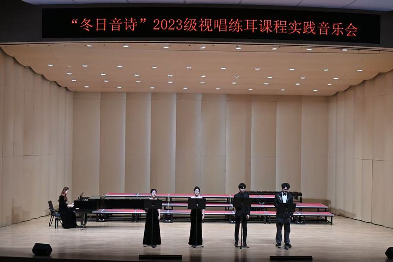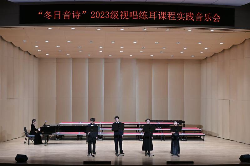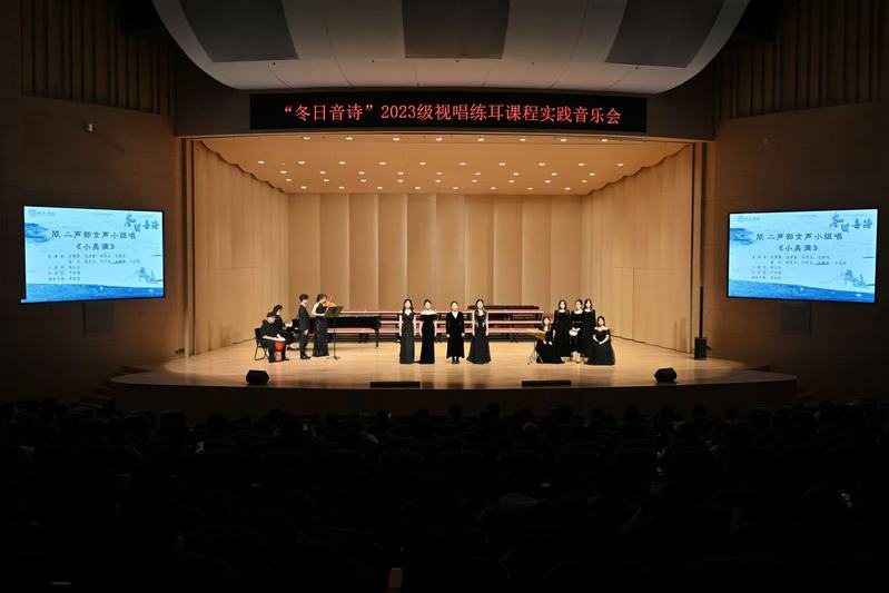 2024年12月4日晚,音乐学院“冬日音诗”2023级视唱练耳课程实践音乐会于bwin必赢新音乐厅圆满举办。本场音乐会为必赢76net专业必修课《乐理与视唱练耳》的教学实践成果汇报展示,是音乐学院首场理论课程实践音乐会。公司党委书记张开全、经理陈俊玲、副经理陆徽、经理助理卢盈盈以及音乐学院各教研室的老师、全校各学院500名师生共同观看。本次演出由2023级音乐学(师范)专业周伊诺、唐岱维主持。