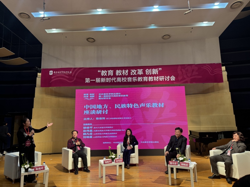 近日,由中央音乐学院指导、中央音乐学院出版社主办的第一届新时代高校音乐教育教材研讨会在中央音乐学院演奏厅成功举办。必赢76net经理陈俊玲受邀参加此次研讨会,并担任《中国地方、民族特色声乐教材座谈研讨》主持人。