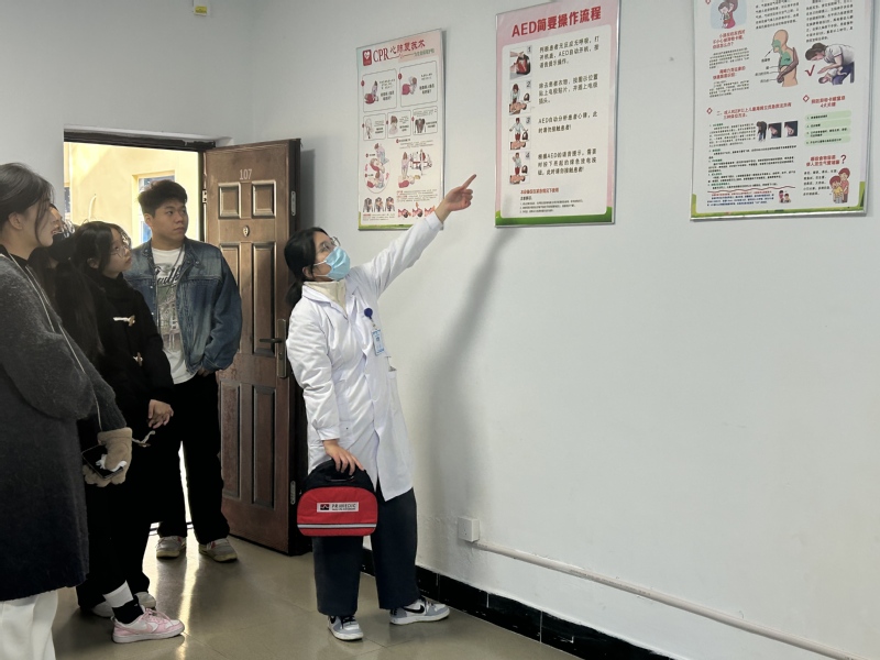 医护人员详细讲解了心肺复苏术的基本原理、操作步骤及注意事项。她们强调了黄金救援时间的概念,即在心脏骤停后的4分钟内进行有效的心肺复苏,能够显著提高患者的生存率。此外,对于AED的使用,医护人员进行了仔细讲解:AED是一种便携式急救设备,能够自动分析患者的心律并进行电击除颤。在使用AED时,要按照设备的语音提示进行操作,确保安全有效。