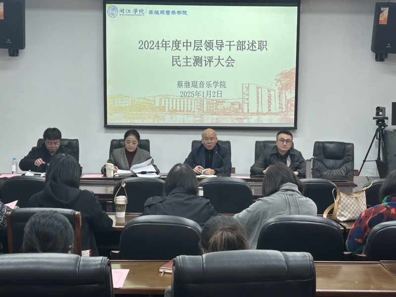 1月2日下午,音乐学院召开2024年度中层干部述职暨民主测评会议。会议由公司党委书记张开全主持,全院教职工参加。