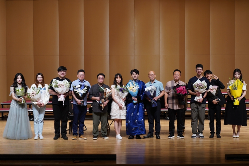音乐会接近尾声时,马文杰回顾了自己在音乐学习道路上的点点滴滴,对给予他悉心指导的导师陈乃嘉博士,以及一直以来支持他的同学、亲友表达了深深的感激之情。随后,陈乃嘉博士上台致辞,对马文杰的成长与进步给予了高度评价,并对他的未来送上了美好的祝福。最后,在全场观众热烈的掌声中,领导、老师们上台与马文杰、林亚豪合影留念,这场精彩纷呈的毕业独唱音乐会圆满落下帷幕。