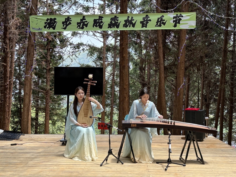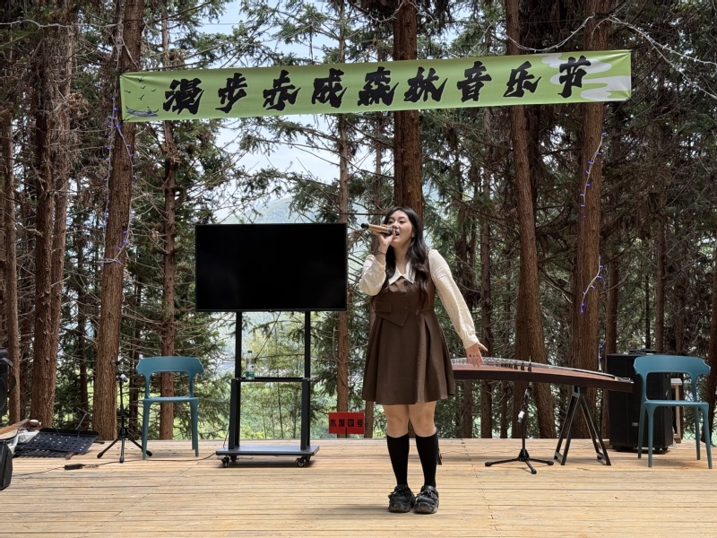 音乐学院员工在漫步赤成森林音乐节现场表演
