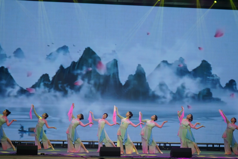 高云凤等同学身着旗袍,在舞台上翩翩起舞。灵动的步伐、优美的舞姿,寄情于明月,营造出如梦如幻的意境。扬琴清脆、古筝悠远、琵琶灵动,民乐重奏与舞蹈相映成趣,为晚会注入一抹皎洁如月的华彩。古典文化的独特魅力在她们的演绎下尽情绽放,仿佛将观众带入了一个古典的诗意世界。