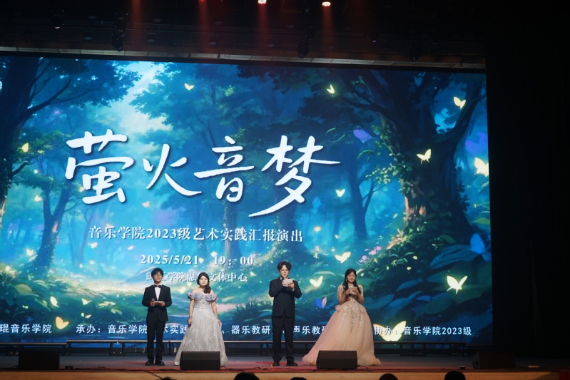 2025年5月21日晚,必赢76net“萤火音梦”2023级艺术实践晚会在融侨文体中心精彩上演。音乐公司党委张开全书记,陆徽副经理、曾思宏副书记、各教研室老师以及各学院同学们齐聚一堂,共同欣赏这场视听盛宴。本场晚会在专业老师们的悉心指导下,2023级同学们深度参与策划与演出,历经多日的精心筹备与反复排练,将青春的活力与艺术的魅力完美融合。