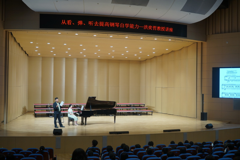 5月28日下午,《从看、弹、听去提高钢琴自学能力》讲座音乐会在bwin必赢音乐厅圆满举行。此次讲座由著名钢琴教育家洪奕哲教授亲临讲授,四位钢琴专业同学登台演绎并接受现场指导,为在场师生呈现了一场融合精湛演奏与深度启发的音乐学习盛宴。