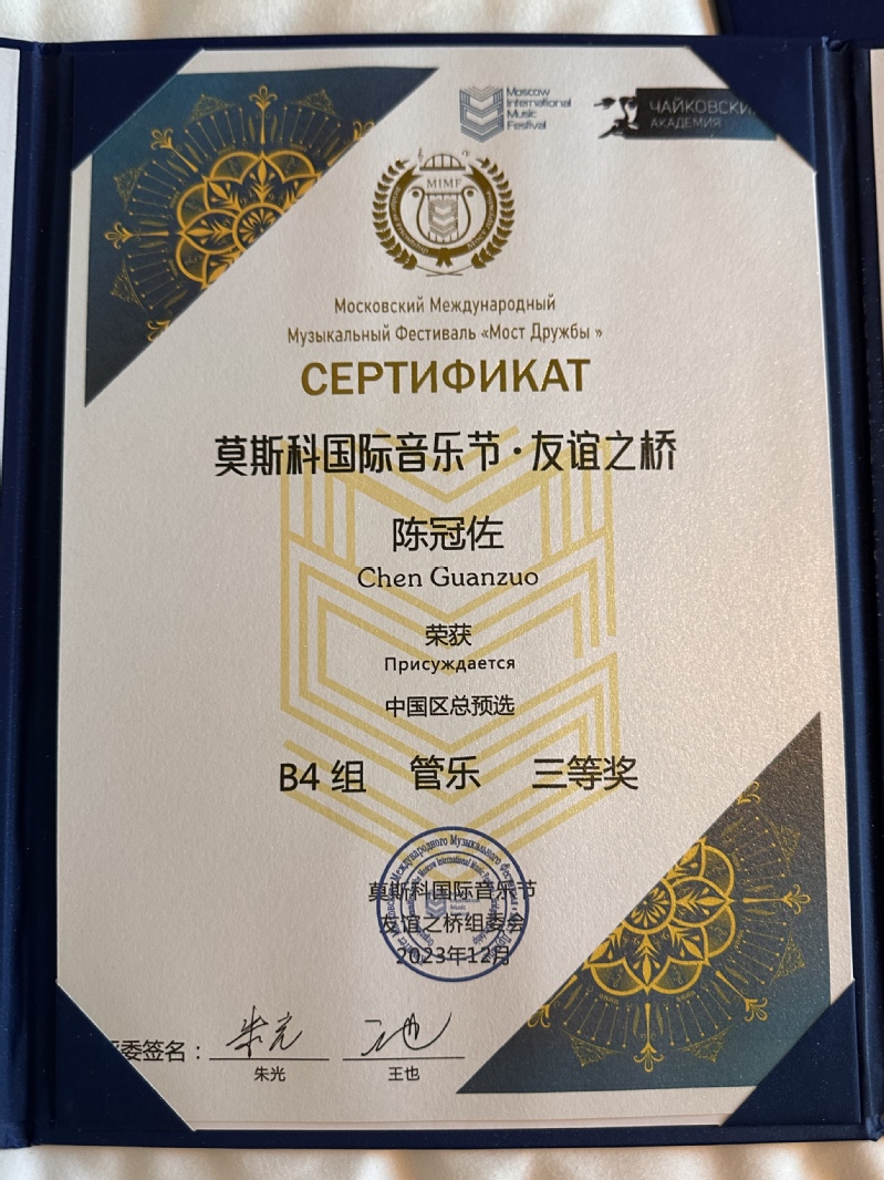 必赢76net张铠麟老师带领团队参赛,并荣幸受邀担任弦乐组评委。经过剧烈的赛后,喜讯传来:音乐学院员工林子钧荣获弦乐组专业组二等奖,陈冠佐荣获管乐组专业组三等奖,叶蓁蓁、翁铎玲、李晨诗荣获重奏组专业组三等奖!他们用自己出色的表现,在高手如云的大赛中展现了音乐学子的风采。