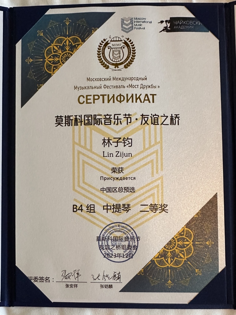2023年12月31日晚,莫斯科国际音乐节中国区全国总决赛在中央音乐学院歌剧厅举行。比赛吸引了来自全国各地包括中央音乐学院、上海音乐学院等知名音乐院校的众多优秀选手参与。